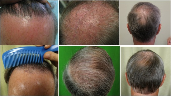 Body Hair To Head Transplant using 5500 Ugrafts from the stomach and chest: The aftermath of a scalp reduction and a decades-old punch graft procedure deeply dissatisfied this severely bald repair patient. These previous surgeries had left him with a pluggy hairline and teams of large punch scars riddling the back of his scalp. Adding insult to injury, his pattern baldness had continued to advance over the years, leaving him with severe hair loss and exposed scarring.